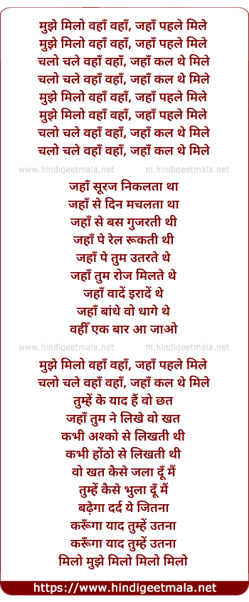 Lyrics of Muje Milo Wahan Wahan - मुझे मिलो वहाँ वहाँ