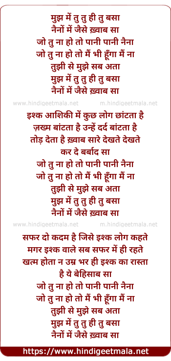Lyrics of Mujh Mein Tu (Ii) - मुझ में तु तु ही तु बसा