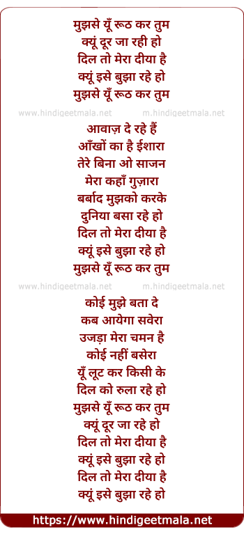 Lyrics of Mujhase Yun Ruth Kar Kyun Dur Jaa Rahi Ho - मुझसे यूँ रूठ कर तुम