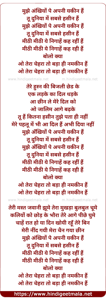 Lyrics of Mujhe Akhiyon Pe Apni Yakin Hai - मुझे अंखियों पे अपनी यकीन हैं