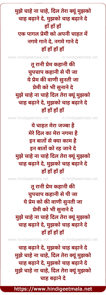 Lyrics of Mujhe Chahe Na Chahe - मुझे चाहे ना चाहे, दिल तेरा क्यूं मुझको