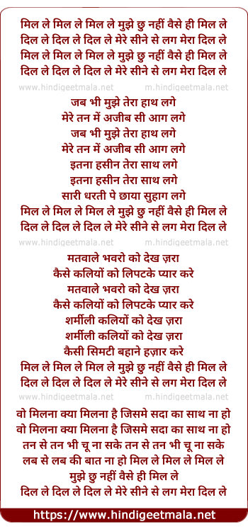 mil le mil le mil le mujhe chhu nahi waise hi mil le