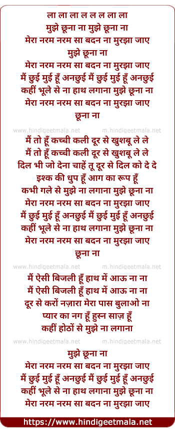 Poetic Translation - Lyrics of Mujhe Chhuna Na - मुझे छूना ना