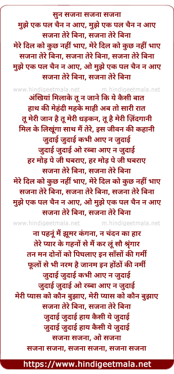 Lyrics of Mujhe Ek Pal Chain Na Aaye Sajna Tere Bina - मुझे एक पल चैन न आए,