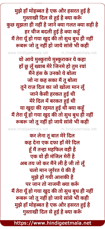 Lyrics of Mujhe Haan Mohabbat Hui Hai - मुझे हाँ मोहब्बत हुई है