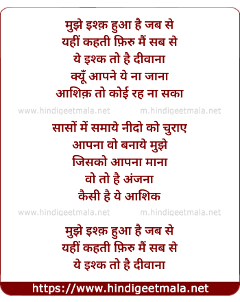 Lyrics of Mujhe Ishq Hua - मुझे इश्क़ हुआ है जब से