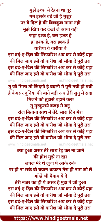 is dard-e-dil ki sifarish ab kar de koi yaha