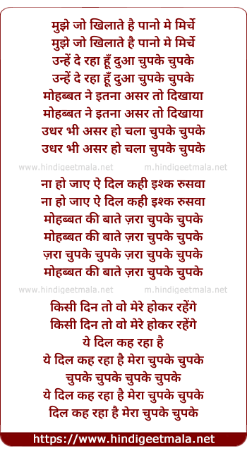 Lyrics of Mujhe Jo Khilate Hai Pano Me Mirche - मुझे जो खिलाते है पानो मे मिर्चे