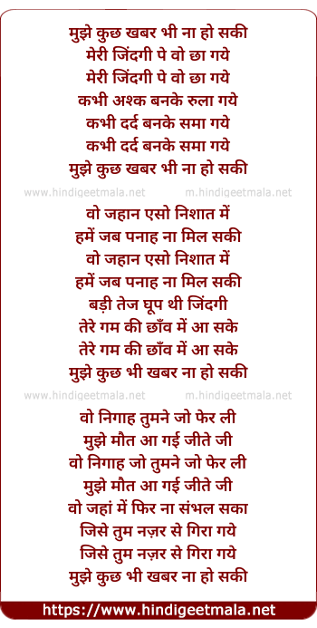 Lyrics of Mujhe Kuch Khabar Na Ho Saki - मुझे कुछ खबर भी ना हो सकी