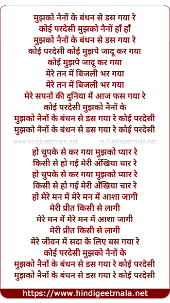 mujhe naino ke bandhan se das gaya re koi pardesi