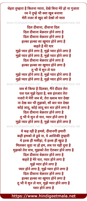 Lyrics of Mujhe Pyar Hone Laga Hai - मुझे प्यार होने लगा है
