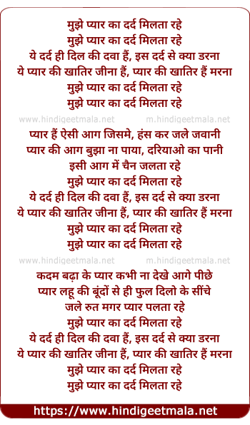 Lyrics of Mujhe Pyaar Ka Dard Milta Rahe - मुझे प्यार का दर्द मिलता रहे