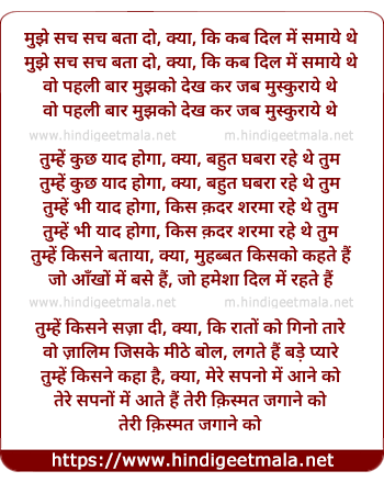 mujhe sach sach bata do, kya, ki kab dil me samaye the