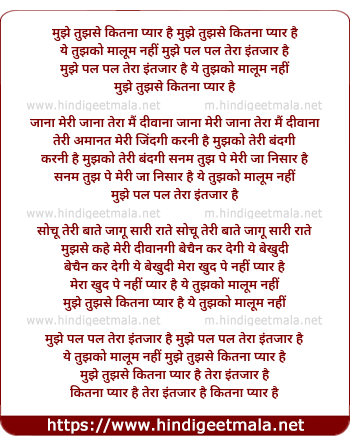 Lyrics of Mujhe Tujhse Kitna Pyar Hai Ye Tujhko - मुझे तुझसे कितना प्यार है ये तुझको