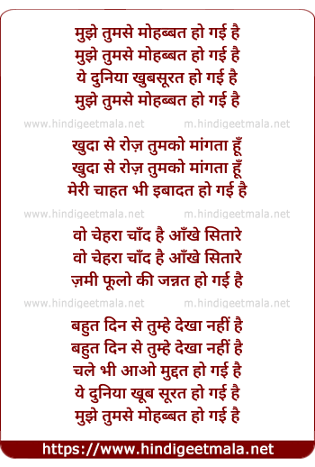 Lyrics of Mujhe Tumse Mohabbat Ho Gayi - मुझे तुमसे मोहब्बत हो गई
