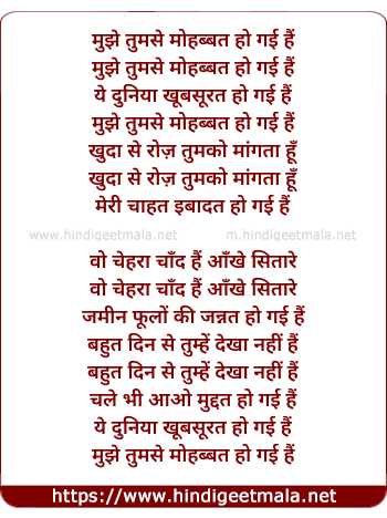 Lyrics of Mujhe Tumse Mohabbat Ho Gayi Hai - मुझे तुमसे मोहब्बत हो गई हैं