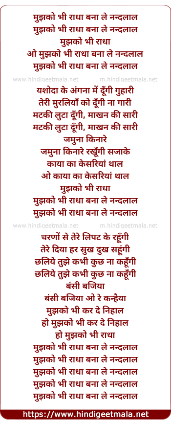 Lyrics of Mujhko Bhi Radha Bana Le Nandlal (Sad) - मुझको भी राधा बना ले नन्दलाल