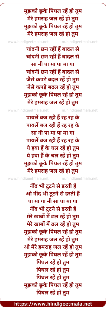 Lyrics of Mujhko Chhuke Pighal Rahe Ho - मुझको छूके पिघल रहें हो तुम