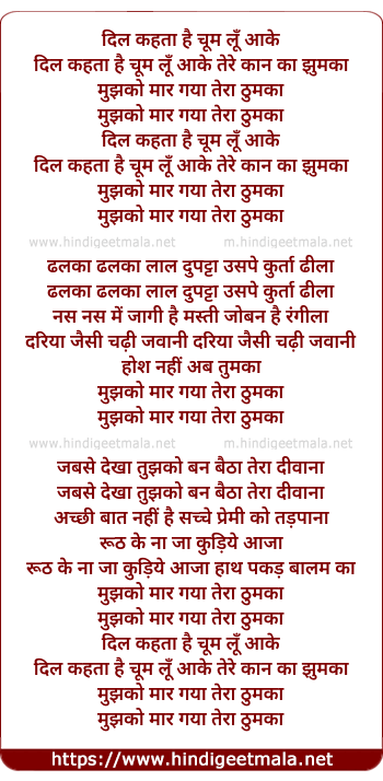 dil kehta hai chum lun aake tere kaan ka jhumka
