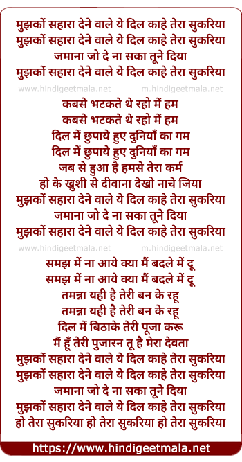 mujhko sahara dene wale ye dil kahe tera sukariya