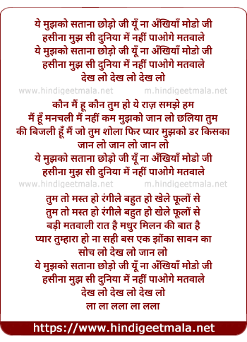 ye mujhko satana chhodo ji ki yun na ankhiya modo ji