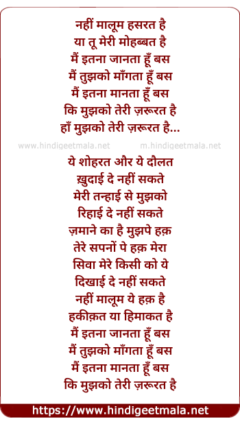 Poetic Translation - Lyrics of Mujhko Teri Zaroorat Hai (Remix)