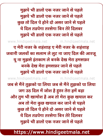 Lyrics of Mujhpe Bhi To Dalo Ek Nazar - मुझपे भी तो डालो एक नजर