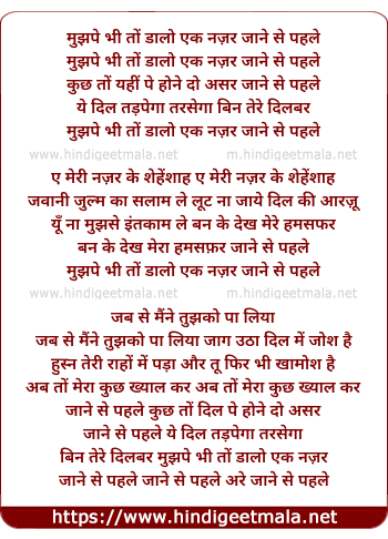 Lyrics of Mujhpe Bhi To Dalo Ek Nazar (Apna Khoon) - मुझपे भी तों डालो एक नज़र जाने से पहले