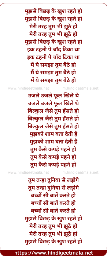 Lyrics of Mujhse Bichhad Ke Khush Rehte Ho - मुझसे बिछड़ के खुश रहते हो