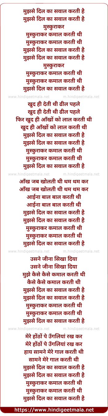 Lyrics of Mujhse Dil Ka Sawal - मुझसे दिल का सवाल
