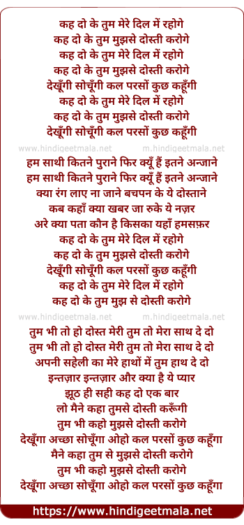 Lyrics of Kah Do Ki Tum Mujhse Dosti Karoge - कह दो के तुम मुझ से दोस्ती करोगे