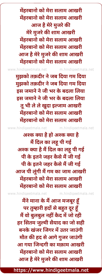 Lyrics of Mujre Ki Shaam Aakhri - मुजरे की शाम आखरी