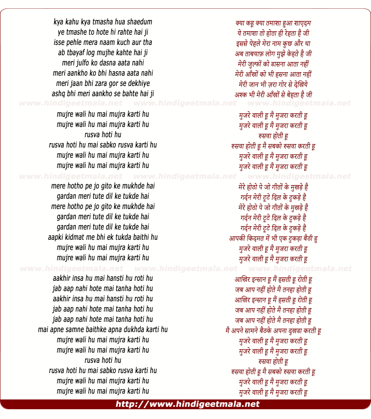 Comments for lyrics of song "Mujre Wali Hun Main Mujra Karti Hu"