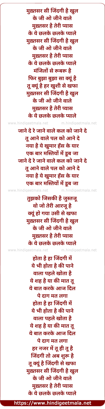 Lyrics of Mukhtasar Si Zindagi - मुख़्तसर सी जिंदगी
