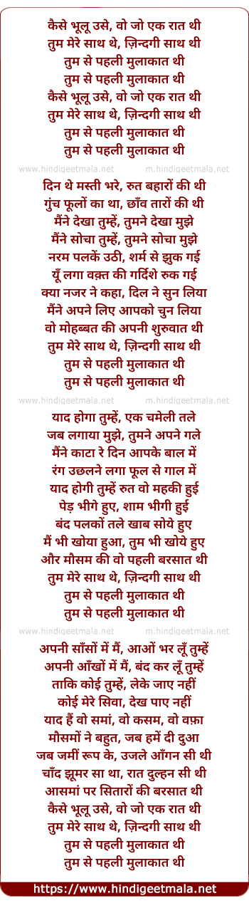 Lyrics of Tum Se Pehli Mulaqat Thi - कैसे भूलू उसे, वो जो एक रात थी