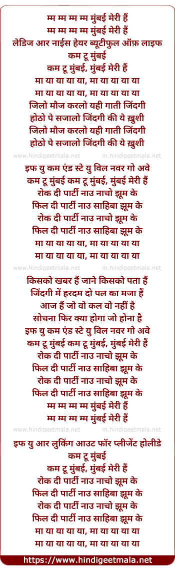 Lyrics of Mumbai Meri Hai - मुंबई मेरी हैं