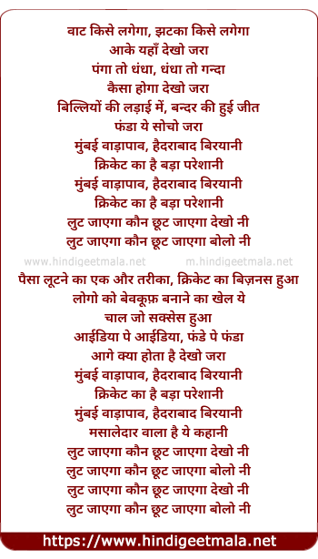 Lyrics of Mumbai Vadapaav, Haidrbabaad Biryaani - मुंबई वाड़ापाव, हैदराबाद बिरयानी