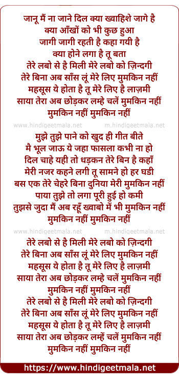 Lyrics of Mumkin Nahi - मुमकिन नहीं