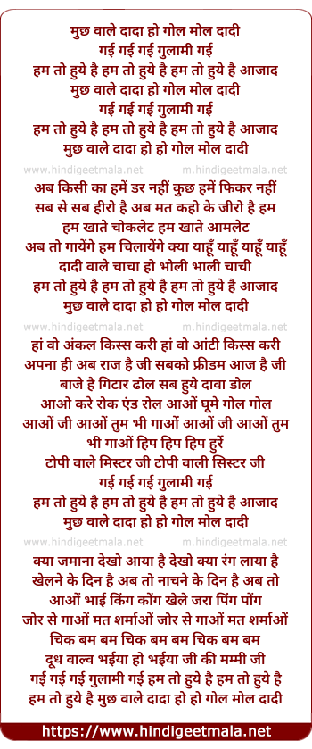 Lyrics of Munchh Wale Dada Ho Gol Mol Dadi - मुछ वाले दादा हो गोल मोल दादी