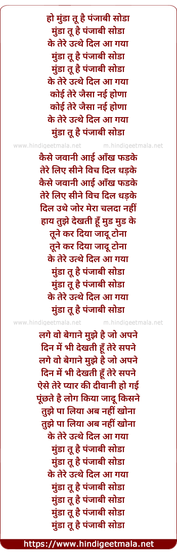 Lyrics of Munda Tu Hai Punjabi Sona - हो मुंडा तू है पंजाबी सोडा