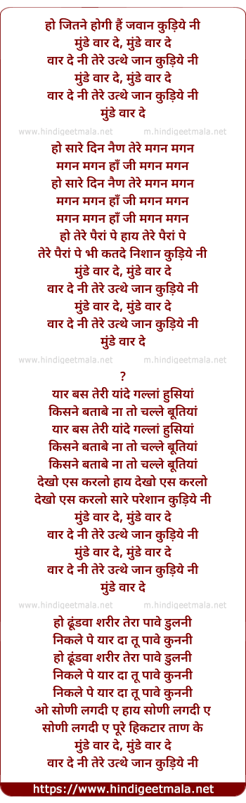 Lyrics of Munde Waarde - हो जितने होगी हैं जवान कुड़िये नी