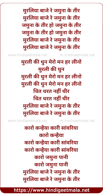 Lyrics of Muraliya Baje Re Jamuna Ke Teer - मुरलिया बाजे रे जमुना के तीर