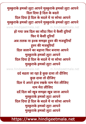 Lyrics of Muskura Ke Humko Luta Aapne - मुस्कुरा के हमको लुटा आपने