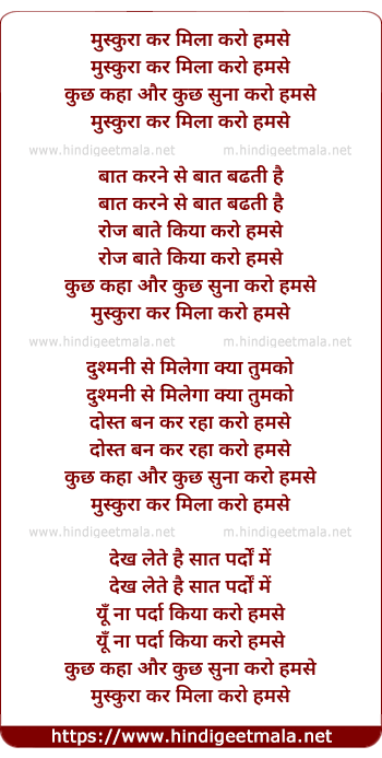 Lyrics of Muskurakar Milaa Karo Humse - मुस्कुरा कर मिला करो हमसे