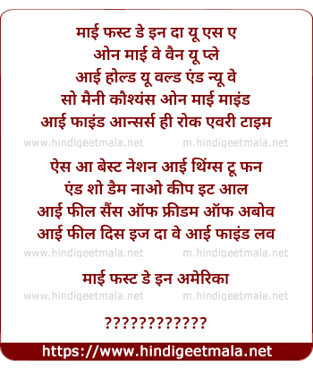 Lyrics of My First Day In The U S A - माई फस्ट डे इन दा यू एस ए