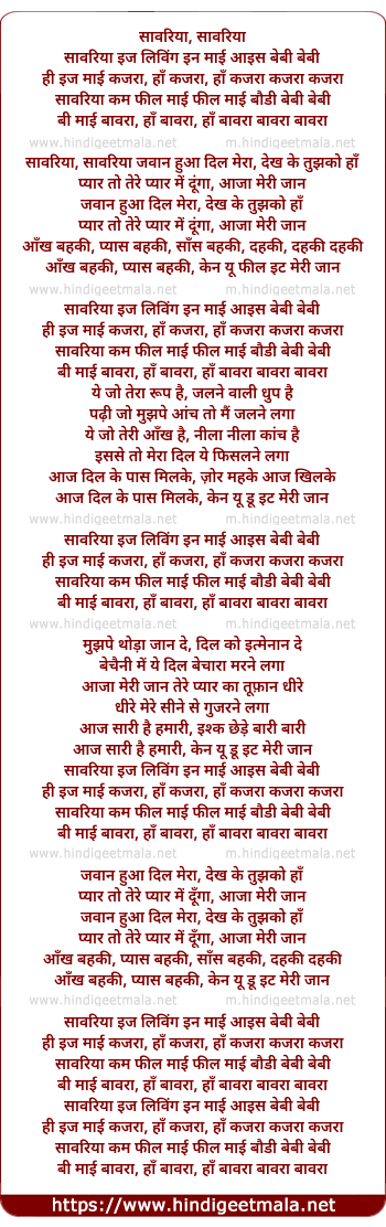 sawariya come feel my feel my body baby baby