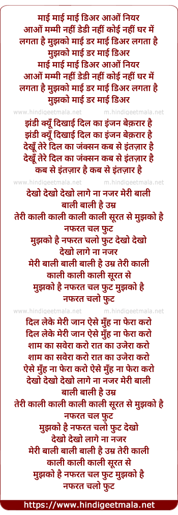 Lyrics of My My My Dear, Aao Near - माई माई माई डिअर आओं नियर