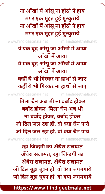 Lyrics of Na Aankho Me Aansu Na Hotho Pe - ना आँखों में आंसू ना होंठो पे