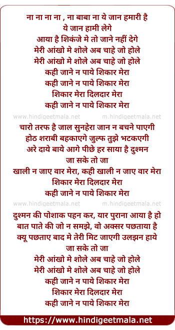 Lyrics of Na Baba Na Ye Jaan Hamari Hai