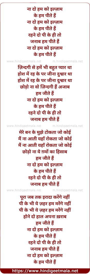 Lyrics of Na Do Hum Ko Ilzaam - ना दो हम को इल्ज़ाम